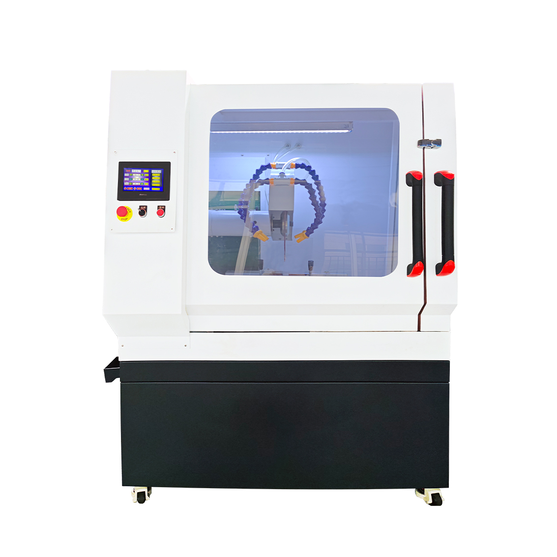 二、技術(shù)特點(diǎn): 1、立地一體式切割機(jī); 2、手自一體智能切割機(jī); 3、三軸聯(lián)動(dòng)(X/Y/Z)三軸自動(dòng); 4、多種自動(dòng)切割模式(垂直切割、分層切割、水平切割、聯(lián)動(dòng)切割); 5、超大切割室(透明切割觀察窗口); 6、貫通式超大空間。 6、磁性分離系統(tǒng)(有效分離切割金屬雜質(zhì));  三、技術(shù)參數(shù):